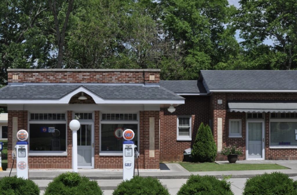 - College Inn/Newby Gulf Station Museum was built in 1933 by W.A. Caughran, a local Gulf dealer, and the two-building service station and lunch counter complex was one of the first service stations built in Athens. It is one of only two service station/cafe structures of the Prairie Style architecture left in the state. This style is associated with architect Frank Lloyd Wright and includes a low-pitched roof, overhanging eaves, horizontal lines and an open floor plan. In 1947, Cloyde Mason Newby Jr., acquired the College Inn & Newby Gulf Station which became one of Athens’ Hot Spots. Built in the later 1920s, the College Inn was where everyone caught up on the latest news and where soldiers home on leave visited frequently. Young ladies were always happy to see the GI’s and hear their stories.